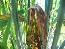 Rhynchosporium is a genus of fungi that causes leaf scald disease on several graminaceous hosts. It includes five currently accepted species: R. secalis from rye and triticale, R. orthosporum from Dactylis glomerata, R. lolii from Lolium multiflorum and L. perenne, R. agropyri from Agropyron, and R. commune from Hordeum spp., Lolium multiflorum and Bromus diandrus.[1][2] R. commune is one of the most destructive pathogens of barley worldwide, causing yield decreases of up to 40% and reduced grain quality.[3]