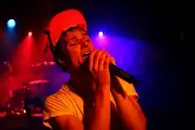 Group movement plays a large role, with Aucoin leading the audience through many interactive moments and large group coordination.[24] Aucoin plays either solo with samples or with a various configuration of backing band members from all over North America and Europe.[60][61] Some configurations are drums, bass, synths, guitar, horns and back up singers to having larger bands with strings and choral groups.[61]