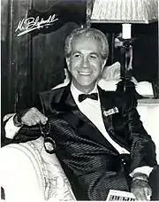 In 1968 he starred in his own KCOP two-hour color television special, Mr. Blackwell Presents, with Anna Maria Alberghetti, Nick Adams and Rose Marie.[24][25] It was the first telecast in history in which a designer presented his line on television. He continued to be recognized as preeminent during his years in the field.[26] Also in 1968, Mr. Blackwell released an LP album of a show titled "The Mr. Blackwell Show" on the Rob Rich Records label that was presented on stage at The Desert Inn in Las Vegas in 1967, as well as The Cincinnati Symphony Orchestra in early 1967 as well. The album only saw limited distribution probably due to poor sales and as such is now a sought after collectors item today. The album features Mr. Blackwell reciting fashion commentary over a musical background.