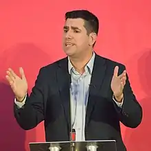 Burgon has previously expressed support for the PSUV government in Venezuela and tweeted a congratulatory message to Nicolás Maduro when he became president in 2013. On an episode of Question Time in February 2019, Burgon refused to express regret for supporting Maduro following the outbreak of the 2019 Venezuelan presidential crisis.[55] He has also expressed support for the Communist Party government in Cuba and spoke at a memorial event for Cuban President Fidel Castro following his death in 2016. During his speech, in which he praised Castro extensively, he stated that "Fidel Castro was a giant. A man of ideas. A man of action".[56]
