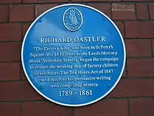 - ↑ "Oastler the Reformer: Memorial unveiled in Leeds". Yorkshire Post and Leeds Intelligencer. 2 November 1925. p. 6.