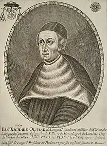 Richard Olivier de Longueil (1406–1470) (called the Cardinal of Coutances or the Cardinal of Eu) was a French Roman Catholic bishop and cardinal.