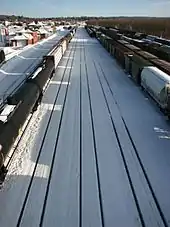 Following Canadian deregulation in 1989, short line operator Genesee & Wyoming formed subsidiary St-Laurent & Atlantique Railroad (Quebec) (SLQ) to operate the portion of the St. Lawrence and Atlantic Railroad line from the US border at Norton through to Sainte-Rosalie, where it connects with the CNR main line. This company has facilities beside the station[7] and a rail yard that stretches along the east bank of the Richelieu River.