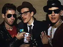 Powell (center) with two of the three Beastie Boys, MCA (left) and Mike D (right)