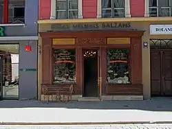 Riga Black Balsam (Latvian: Rīgas Melnais balzams) is a traditional Latvian balsam often considered to be the national drink of Latvia.[2] According to tradition, only the Head Liquor Master and two of his apprentices know the exact recipe.[3] Nowadays, Riga Black Balsam is produced by JSC Latvijas Balzams and has received more than 100 awards at different international fairs throughout its history.[4]