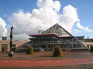 The station has been in a tunnel since 1996, with four tracks and four platforms. The northern entrance is a modern glass pyramid protruding from the ground, not unlike that of the Louvre, while the southern entrance, on Winston Churchilllaan, is combined with a local bus and tram station.