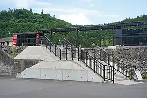 Rikuzen-Yokoyama Station had one side platform serving a single-bi-directional track. The station was unattended. This has been changed to a ground-level platform serving bus rapid transit service.