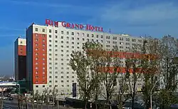It is formely known as RIN Grand Hotel, the fifth-largest hotel in Europe and the largest hotel in the European Union in terms of room count, having a total of 1,459 rooms.[1] The modern building has two underground floors and 16 overground floors and a constructed surface area of 115,000 square metres (1,240,000 sq ft).
