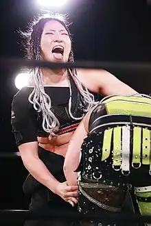 Yamashita took part in various notable tournaments of the promotion. She started with Catch The Wave 2014 Young Block, where she competed against Kaho Kobayashi, Sumire Natsu, Risa Sera, Fairy Nipponbashi and Shiori Akiba, scoring a total of five points.[12] At the 2015 edition of seniors, Yamashita entered last as chosen by Mikiko Futagami and finished on the last position after competing against Kana, Hikaru Shida, Yumi Ohka, Ryo Mizunami, Misaki Ohata, Kaho Kobayashi, Maika Iida, Cherry and Sakura Hirota.[13] Her best result was at the 2018 editionwhere she placed herself in the Block A, competing against Nagisa Nozaki, Ryo Mizunami, Yumi Ohka, Asuka and Miyuki Takase, winning it with a total of nine points, and defeating Ayako Hamada in the finals to win the tournament.[14] She also competed in the 2014 Dual Shock Wave tournament where she teamed up with Sawako Shimono as Satsuma Kotsuji-gun, fighting Kyoko Kimura and Tomoka Nakagawa into a time-limit draw, succeeded by Yamashita falling short to Nakagawa in an overtime singles match.[15] At the 2015 edition, she teamed up with Kaho Kobayashi as Fafrotskies, falling short to Haru☆kura (Kayoko Haruyama and Tsubasa Kuragaki) in a first-round match on October 2.[16] At the 2016 edition, she scored her best performance, teaming up with Dynamite Kansai as GReeeeN, defeating Chōjin Shitei Konbi (Mika Iida and Yuki Miyazaki) in the first-round match,[17] fWo (Fairy Nipponbashi and Kyusei Sakura Hirota) in the second-round match,[18] obtaining a bye victory in the semi-finals, and finally picking up the decisive victory against Redbull (Chihiro Hashimoto and Ryo Mizunami) in the finals on October 10.[19]