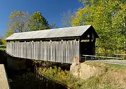 The Ringos Mill Covered Bridge spans Fox Creek in Fleming County, Kentucky, in a single 90-foot span. It was named for a grist mill situated 50 yards downstream.[2]