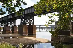 The Rivanna Subdivision Trestle is a trestle in Richmond, Virginia at the end of the Rivanna Subdivision. The bridge is the upper level of Triple Crossing, and also crosses United States Routes 360. It parallels the James River, and actually "steps" into it at one section. The bridge connects to the Peninsula Subdivision Trestle.