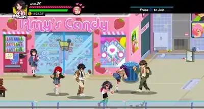 Defeated enemies drop money for the player to collect, just as in River City Ransom. Money can be spent at various shops to purchase items, food, and gear to increase stats. Money can also be used to purchase new fighting moves from the Dojo to complement the starting basic set. Abilities are all simple to perform, being a direction + a button; complexity for advanced players lies in chaining the simple moves together into long combos.[3] Characters also gain experience points and level-ups from defeating enemies, as in River City Ransom: Underground. Completion of quests grant experience and money rewards to both characters, ensuring that the one that the player is not using in a single player game does not fall behind in levels or money. As bosses are defeated in the game, enemies become stronger. Upon defeating the final enemy in an area, they might surrender. The player can choose to either defeat the enemy as normal, or to recruit them. Recruited enemies can be summoned to assist the player, although only one recruit is kept at a time. The player can pick up various objects during the game and use them as improvised weapons, but they will break after being used multiple times.