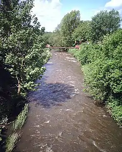 There are two locations on the river where water is abstracted to maintain levels in the Leeds and Liverpool Canal. On many sections of the river, flows are augmented by the discharge from sewage treatment works.[14] Major treatment works are located at Horwich on the upper river, at Wigan Wastewater Treatment works in Lathom on the lower section, and at Skelmersdale on the River Tawd.[15] Upgrades to the Wigan and Skelmersdale Treatment Works have been carried out, to improve the quality of the final effluent before discharge into the river system, while in Wigan, the sewage system has been improved, to reduce the amount of raw sewage discharged into the river by combined sewer overflows. In Standish, the pumping station at Chorley Road has been upgraded to reduce its impact on the river, while in Horwich, there was an ongoing scheme in 2014 in which volunteers walked the river to identify pollution points, which were then followed up by officers from the Environment Agency. Run-off of nutrients and other pollutants from agricultural land has also been addressed through the Catchment Sensitive Farming project, run jointly by Natural England, the Environment Agency and the Department for Environment, Food and Rural Affairs.[15] Another joint initiative between the Environment Agency and the Royal Society for the Protection of Birds has seen sea defences improved and 370 acres (150 ha) of saltmarsh created as part of the Hesketh Outmarsh Coastal Realignment project.[16]