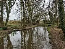 The Marden rises just north of the valley of Ranscombe Bottom near Calstone Wellington in Wiltshire.[1] It then flows in a north-west direction through the Blackland area, where it forms a small ornamental lake at Blackland House, and on to Quemerford, where it is joined on the right bank by the Rivers Brook. In Calne, the Abberd Brook joins on the right. The river turns in a westerly direction and is joined by the overspill from Bowood Lake, part of the Bowood House estate, on the left at Studleybrook Farm. The river is then joined by the combined Fisher's and Cowage brooks before turning to the north-west, past the village of Stanley. 1.5 miles (2.4 km) later it joins the Bristol Avon to the north-east of Chippenham.