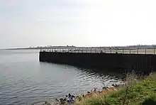 Closer to the visitor centre is Sharp's Green Pond, a small freshwater pond inside the clay sea wall, which is used to promote a diversity of wildlife within the park. Sharp's Green Bay (left of Horrid Hill causeway) is a small tidal marsh bay where a few houseboats are moored.[9] A small car park is on the bay, from a narrow access road from Lower Rainham Road.