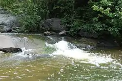 This watercourse was, in part, channeled in 1929 under the Chicoutimi Downtown.[3]
