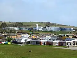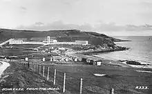 During World War II, the hotel was used to house disabled evacuee children under the age of 14, with most of them coming from London area.[7] In 1958, the hotel was taken over by Fred Pontin as part of his holiday camp chain Pontins.[8] In c. 1960, the single-storey sections of the two accommodation blocks were extended to make them two-storey, increasing the total number of bedrooms to around 100, and a ballroom was built.[2][1]
