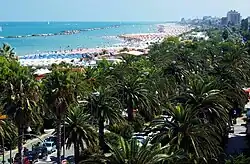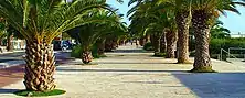 Riviera delle Palme is a tourist area along the Marche Coast of Italy. It extends from Cupra Marittima to the Tronto River, passing through Grottammare and San Benedetto del Tronto. It is considered one of the most important touristic location of the Marche region. The name of the region derives from the thousands of palm trees, mainly of the species Phoenix canariensis, Washingtonia and P. sylvestris that are prevalent in the landscape.