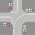 • Working traffic light signals (not turned off or not flashing yellow) precede the priority signs, the road markings, and the general road rules.