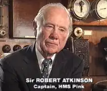 Sir Robert Atkinson, DSC & Two Bars, RD, FREng (7 March 1916 – 25 January 2015) was a British businessman and decorated Royal Navy officer. He served in the Royal Navy during World War II and was awarded the Distinguished Service Cross three times. Later, he was a businessman involved in shipbuilding and served as Chairman of British Shipbuilders from 1980 to 1984.[1]