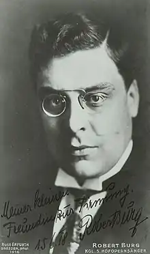 Robert Burg (29 March 1890  9 February 1946), real name Robert Bartl, was a German baritone in opera, concert and recital. He belonged to the opera in Dresden for almost three decades, where he shaped the revival of Verdi operas. He performed in world premieres including the title roles of Busoni's Doktor Faust and Hindemith's Cardillac. Burg also appeared regularly at the Bayreuth Festival and gave international guest performances.
