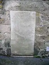 The old front door of the Buck's Head Tavern bearing the inscription 'Over Fork Over', Stewarton's motto at one time and that of the Cunninghame family.