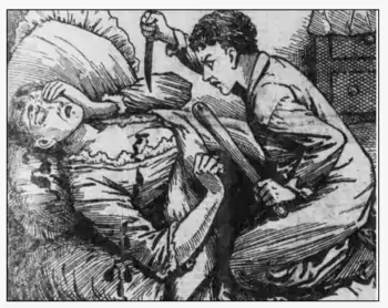 On Sunday 7 July, Emily had beaten Nathaniel and he told Robert that he wanted to kill her. Around 3.45am on Monday morning, Robert stabbed his mother in the heart twice as she lay in bed, having first struck her on the head with a truncheon. Robert, who had slept in his mother's room, seemingly went back to sleep. Between 8.30 and 9am on the Monday he went to Nathaniel's room and told him that he had killed their mother. Nathaniel did not believe this and asked to see. Court evidence states the mother was still groaning in agony at 9am. They covered her head and went out.[7]