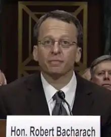 On January 23, 2012, President Barack Obama nominated Bacharach to be United States Circuit Judge for the United States Court of Appeals for the Tenth Circuit.[1] On July 26, 2012, Senate Majority Leader Harry Reid filed for cloture on Bacharach's nomination. A cloture vote held on July 30, 2012, failed by a 56–34 vote, with 3 senators voted present, including both Oklahoma Senators, Tom Coburn and James Inhofe.[3] On January 2, 2013, his nomination was returned to the President, due to the sine die adjournment of the Senate.[2]