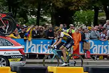 In 2009, Gesink finished fourth overall in the Critérium du Dauphiné Libéré. He started his first Tour de France but broke his wrist during a crash on stage 5. He completed the stage, but had to withdraw from the Tour due to his injuries.[10] He recovered in time to enter into the Vuelta a España. He finished the Vuelta a España in 6th place; he was in 2nd place, but due to a fall where he sustained deep cuts in his knee, he was too injured to keep up in the final mountain stage. Afterwards Gesink focused on regaining his form for the World Championships in Mendrisio, but he had not recovered fast enough and finished off the pace. However, a week later he was back to his old self and took the victory in the Giro dell'Emilia, beating Jakob Fuglsang and Thomas Löfkvist to the line in an uphill sprint. He also took 6th place in the Giro di Lombardia and finished the season as 10th on the UCI World Ranking.