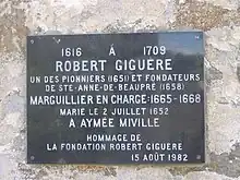 - ↑ Giguère Georges-Émile, Fondation Robert-Giguère and Fondation Robert-Giguère (1982) La première famille giguère : robert giguère et aymée miville et leurs 13 enfants, 1652-1760. Montréal: Fondation Robert Giguère (Histoire et généalogie).