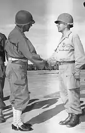 ![]() Colonel Soule (right) is awarded the Distinguished Service Cross, Luzon, Philippines, 1945 | |