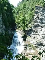 Not satisfied with the achievements in Enfield Glen, Treman and his wife would purchase an additional 387 acres of land around the gorge by 1920. That year, they donated the site's more than 400 acres of land to the State of New York to be designated as Enfield Falls Reservation. After Treman's death, the state changed the name of the reservation to Robert H. Treman State Park.[10][14]