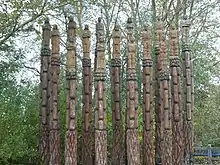 Most of us, to some extent, remember the stories we were told as children – fragments of fictional tales designed to engender good behaviour, or simply fuel our imaginations. For Robert Koenig, growing up in the suburbs of Manchester, the stories were all too real – rich tales of his mother's childhood in south-east Poland, full of community and characters, superseded as he grew older by the altogether darker narrative of her wartime removal to Germany, the hell of the labour camps and her eventual arrival in the UK. For Koenig, the stories stuck, creating a desire to learn more, to see the country of his ancestors and to come to terms with his family history. As a young man in the 1970s, he endured lengthy coach rides and the privations of communist Poland to rebuild the bond with his greater family. As his knowledge of that country grew, so did his realisation that he was shaped more deeply by his past: a sculpting contemporary of Anthony Gormley at London's prestigious Slade School of Art, Koenig suffered for his instinctive – and unfashionable – decision to work in wood, a form which he was now to appreciate as a distinctly Polish tradition. As he matured, Koenig sought his defining project and so in 1997 began carving a series of greater-than-life-size figures, initially called "Dziady", the Polish name of a ceremony celebrating the memory of deceased ancestors, but since renamed "Odyssey" for what has become an international audience. A mass of figures to represent the ancestors he never met, they are "monumental", although rather than crying out for attention, they appeal to the viewer on a more intimate, empathetic level, often inspiring strong emotions from those who come into contact with them. A film of Robert Koenig's tour to the Ukraine – Dziady: In Search of Jan Dudek – will be released soon.[10] (Jan Dudek is Robert Koenig's sculptor uncle who died in 1929 in Przemyslany, Poland – now a part of Western Ukraine).