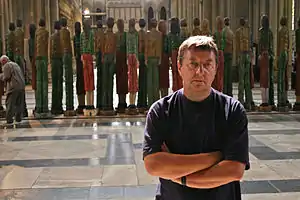 His ongoing monumental woodcarving project 'Odyssey' seeks out temporary exhibition spaces in cathedrals, street corners, town squares, barns and fields in Poland, Ukraine and currently the UK. The UK venues include Rochester Cathedral, Portsmouth Cathedral, Salisbury Cathedral,[6][7] Chichester Cathedral, Worcester Cathedral and York Minster. Odyssey consists of an ever expanding group of carved wood male and female figures, each 2.5m tall. These polychromed figures were exhibited in Leutkirch im Allgäu, Baden-Württemberg, Germany in 2013. As of 2019 there are 46 figures in the Odyssey touring group. There are a further 5 Odyssey figures which were created for each of the five exhibition venues in Germany between 2013-17.