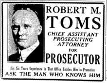 Robert M. Toms 1924 ad for Wayne County Prosecuting Attorney