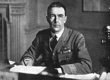 Groves was promoted to commander on 22 June 1911 and the following year, on 26 November 1912, he was appointed Flag Commander to the Commander-in-Chief Mediterranean on HMS Inflexible.[6] He served in the First World War as Assistant Director of the Air Department at the Admiralty and then as Officer Commanding No. 1 Squadron RNAS before returning to the Admiralty to be Assistant Secretary of the Air Board.[6] He was awarded the Distinguished Service Order in 1919, the citation for which was published in a supplement to the London Gazette on 22 June, reading:
