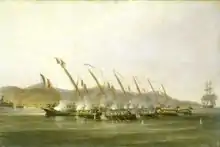 W. Huggins: Capt. Robert Maunsell capturing French gunboats off Java, July 1811[18][19]