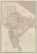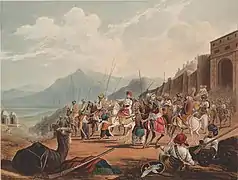 Grindlay undertook numerous military expeditions while in India, including a diplomatic mission to the court of the Talpur Amirs of Sindh in 1808, which formed part of the prelude to the Amir signature of a treaty of "friendship" with the British in 1809.[26][27] Having taken an interest in the history and geography of north-western India, he kept a diary of his travels, including the journey from Lukhpat in Cutch, India to Hyderabad in Sindh, Pakistan along the Kori and Narra rivers by way of Sindhri, to meet with Mir Ghulam Ali Talpur, the ruling Amir.[28] Several extracts of his journal were used to form part of the best selling memoir of Captain Sir Alexander Burnes, Travels into Bokhara, first published in 1835.[26][29]