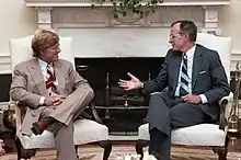 As an avid environmentalist, Redford is a trustee of the Natural Resources Defense Council. He endorsed Democratic President Barack Obama for re-election in 2012.[76] Redford is the first quote on the back cover of Donald Trump's book Crippled America (2015), saying of Trump's candidacy, "I'm glad he's in there, being the way he is, and saying what he says and the ways he says it, I think shakes things up and I think that is very needed."[77][78] A representative later clarified that Redford's statement, taken from a longer conversation with Larry King, was not intended to endorse Trump for president.[79]