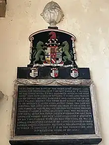 Wall monument to Robert Sutton, to the right of the altar in St. Michael and All Angels, Averham.