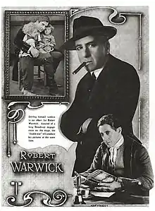 Warwick started making silent films in 1914, with his early work including The Mad Lover (1917) and Thou Art the Man (1920).[7] He made numerous productions in the 1910s primarily in Fort Lee, New Jersey. Two films, Alias Jimmy Valentine and A Girl's Folly, both directed by Maurice Tourneur, have been preserved, and showcase Warwick as a silent actor, as well as Tourneur's directing talent. Both are available in the 21st century on home video.