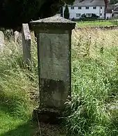 He is buried in Dacre Churchyard, Penrith, Cumbria, England. (i.e. near Dacre Lodge) under an unusual tombstone that is triangular in cross section. The grave is immediately on the right as one enters the churchyard.