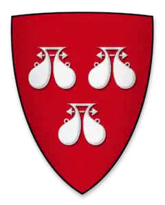 ![]() Arms of Robert de Ros Blazon: Gules, three water bougets argent. | |