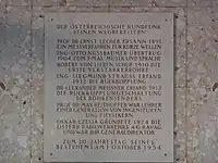 Memorial to the pioneers of radio, including Lieben and Strauss, at the former Radio Verkehrs AG building in Vienna