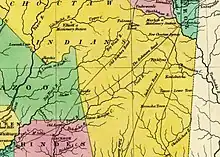 The Robinson Road was designated as a mail route in 1822, which diverted northern Mississippi traffic from the Natchez Trace.[4] The United States government appropriated funds to improve Robinson Road in 1823, as did the Mississippi Legislature in 1824, as the road served as the only contemporary route that connected Jackson to settlements along the Tombigbee River.[5]