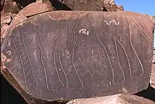 5. Engravings of schematic carriages, which ought to occupy a comparable chronological position to that of the carriages of the Sahara.
