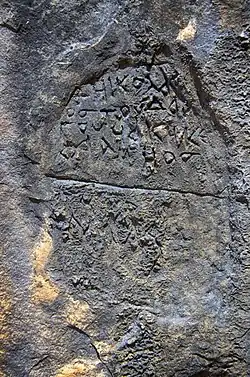 The rock inscriptions of the Grama Bay Albanian: Mbishkrimet shkëmbore në Gjirin e Gramës) is an archaeological site in Southwestern Albania, Vlorë County, in the Grama Bay located on the Ionian coast of the Karaburun Mountains, including roughly 1,500 rock inscriptions that date from the 3rd century BC to the 15th-16th centuries.[1] The name of the bay originates from the Greek word γράμμα meaning 'letter'.[2]
