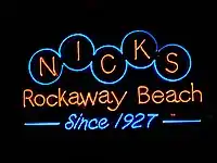 Hugging the coast at the center of Rockaway Beach is a cluster of restaurants and shops, the oldest of which is a Pacifica landmark, Nick's Seafood Restaurant. Another restaurant, historically the romantic Moonraker, hosts nighttime views over the illuminated waves of the Pacific crashing at the restaurant foundation bulwarks. Newer shops nestle behind the Moonraker, many a product of the city's 1986 redevelopment plan.