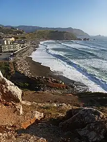 Rockaway Beach is a shoreline area of the Pacific Ocean in the southern portion of Pacifica, California, United States, approximately 7 miles (11 km) south of the city of San Francisco. It is located within a gently curving embayment with direct access via Rockaway Beach Avenue and providing easy access to Highway 1.