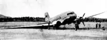 • On 13 April 1948, an Australian National Airways Douglas aircraft sustained considerable damage when it was involved in a hard landing and subsequent loss off control.[65] After landing heavily, a strong gust of wind caused the left wing to rise and the right wing hit the ground, breaking off the wheel and propeller on that side.[65] The plane veered to the left, skidding approximately 100 yards. During the crash sequence, the loose propeller tore a large hole in the fuselage below the pilot's cabin.[65]